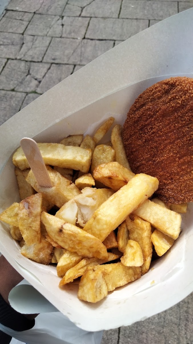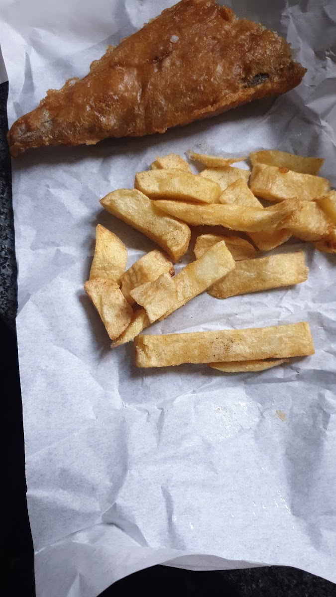 Visited whilst in the town centre when I fancied some real chips and I wasn't disappointed. The chips were a good size and not greasy. I had a fishcake with these and it was fluffy and light inside with a nice, crisp coating. Again, this wasn't greasy. You could eat in or out (I chose to take out) and the seating area looked well presented. Staff were really friendly and the portion size was good value for money. Best thing was you can help yourself to salt and vinegar, something that most chip shops will not allow you to do anymore! Great place!